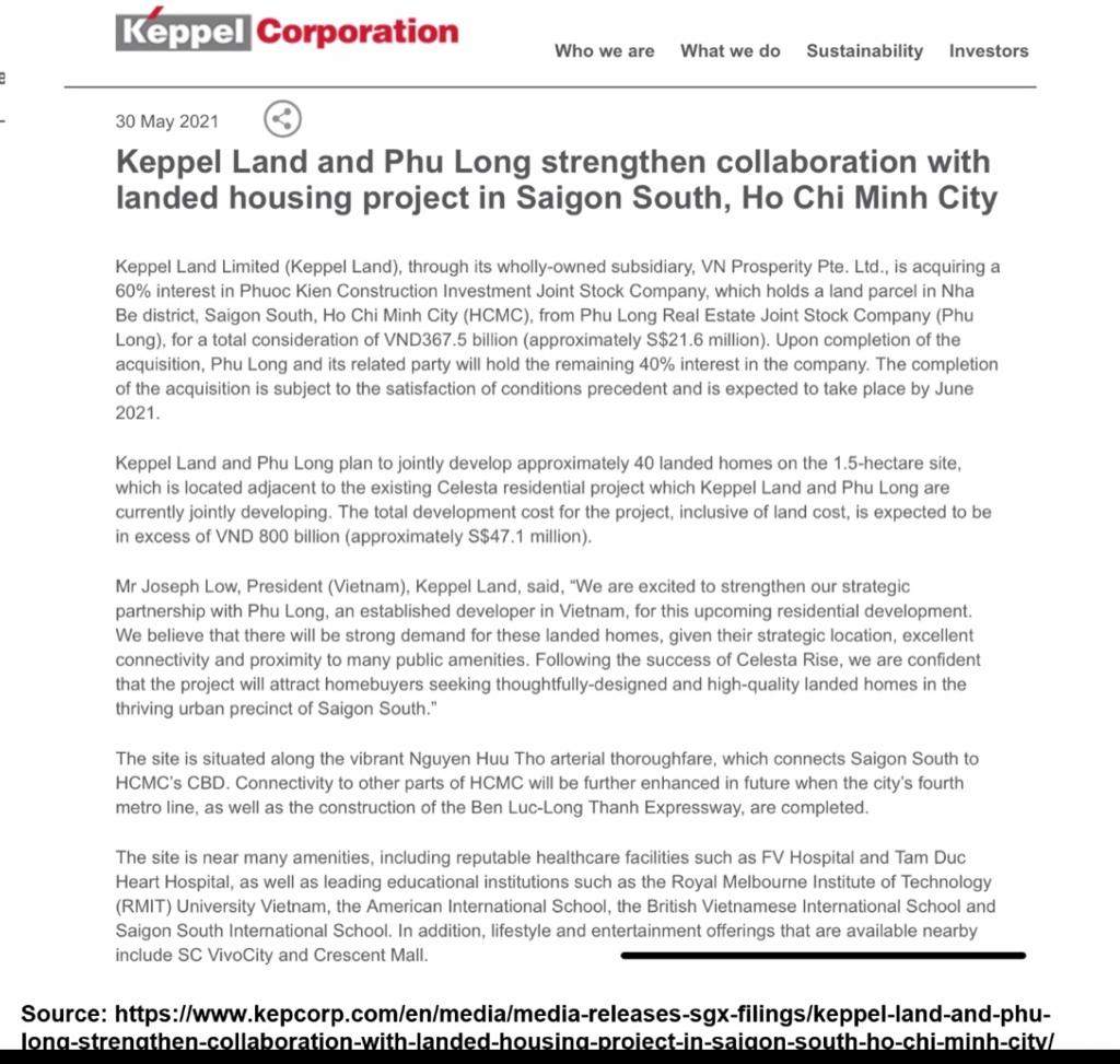 Reputable developer: Phu Long who is long term JV partner with Keppeland in developing high end condos in the east and south Vietnam