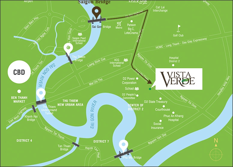 Vista Verde is strategically located in Thanh My Loi Ward, in the heart of District 2’s administrative center. It is five minutes away from essential amenities such as Metro Hypermart, Parkson Department Store, Lotte Cinema, Phuc An Khang Hospital, and prestigious international schools such as ACG International School.